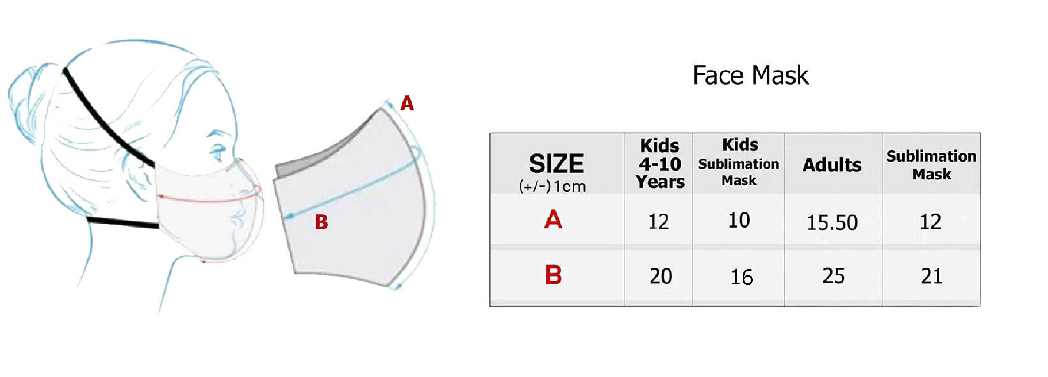 Hygienic face masks for adults you can personalize using sublimation printing. Useful as a barrier to stop your hands from being in contact with your mouth and nose.